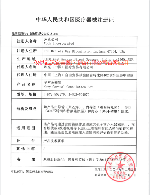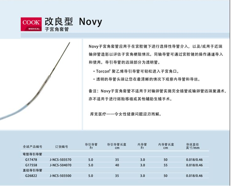 子宮角套管J-NCS-504070型 庫克導(dǎo)絲 代理批發(fā)